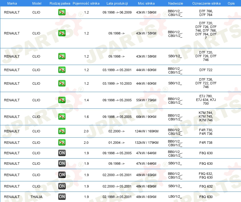 Informacje o części