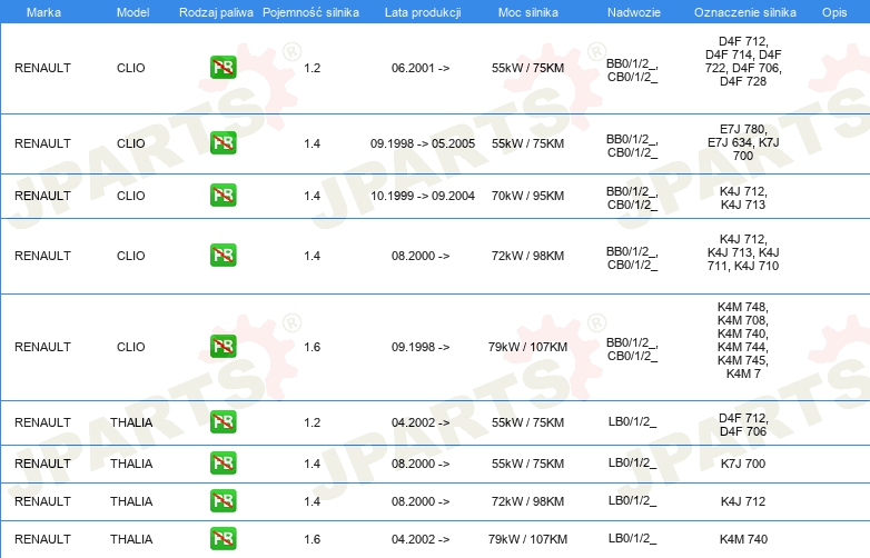 Informacje o części