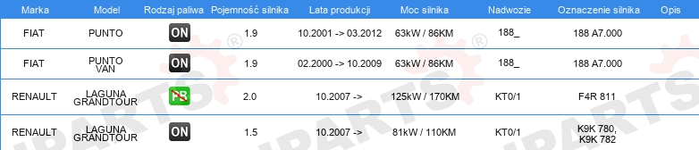 Informacje o części