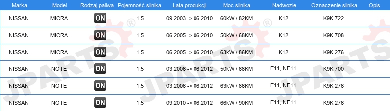 Dodatkowe informacje katalogowe