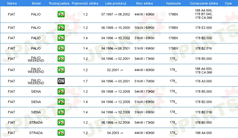 Informacje o części