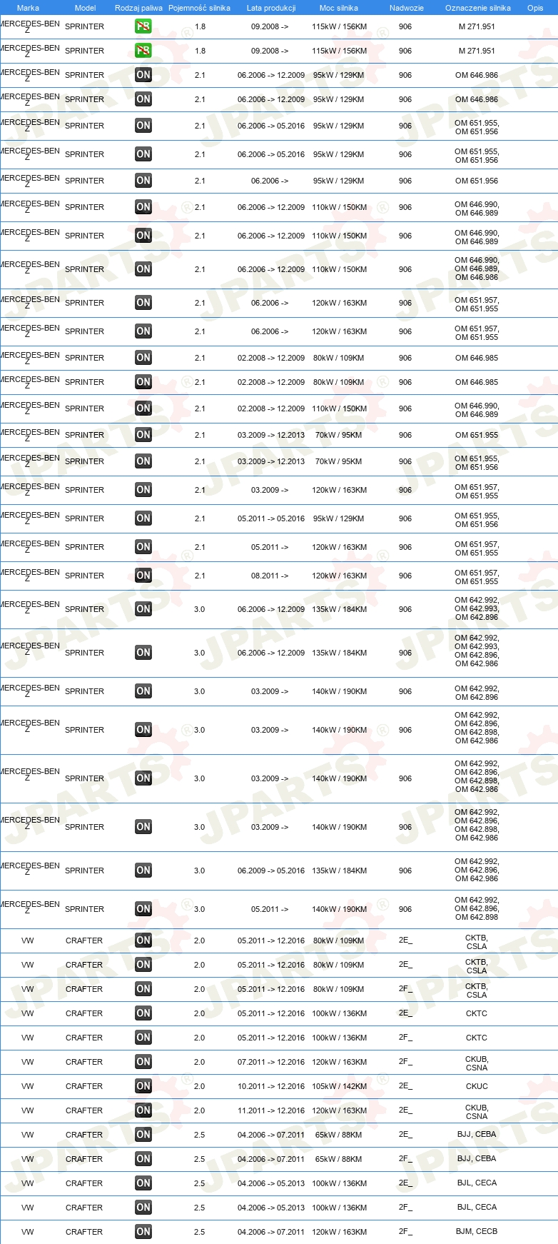 | Wyposażenie pojazdu: | dla pojazdów z silnikiem diesla |