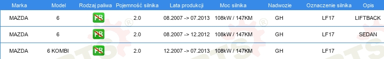 Informacje o części