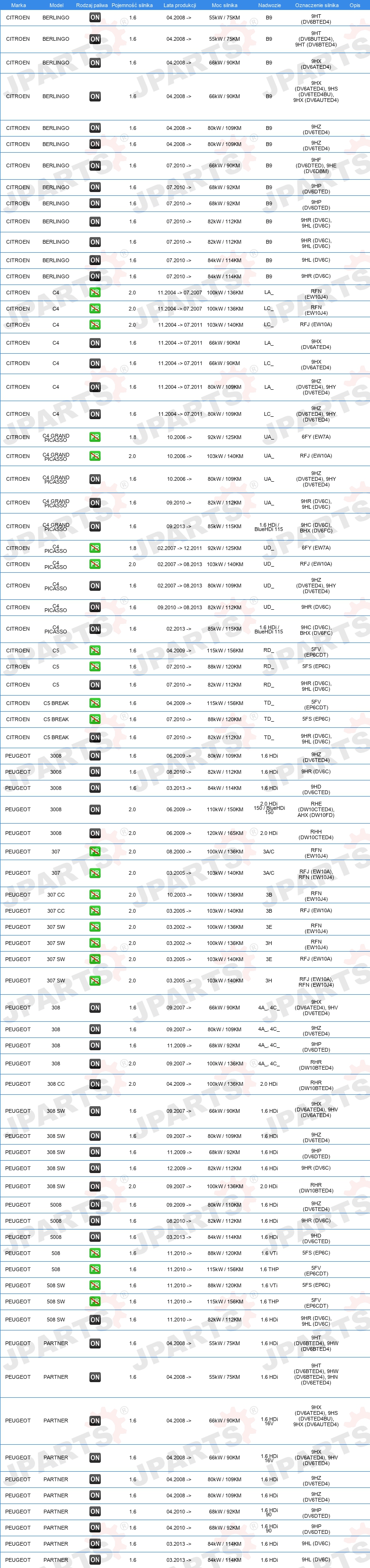 | Ograniczenia producenta: | SANDEN |