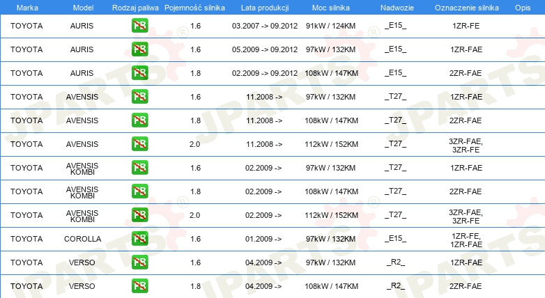 | Ograniczenia producenta: | DENSO |