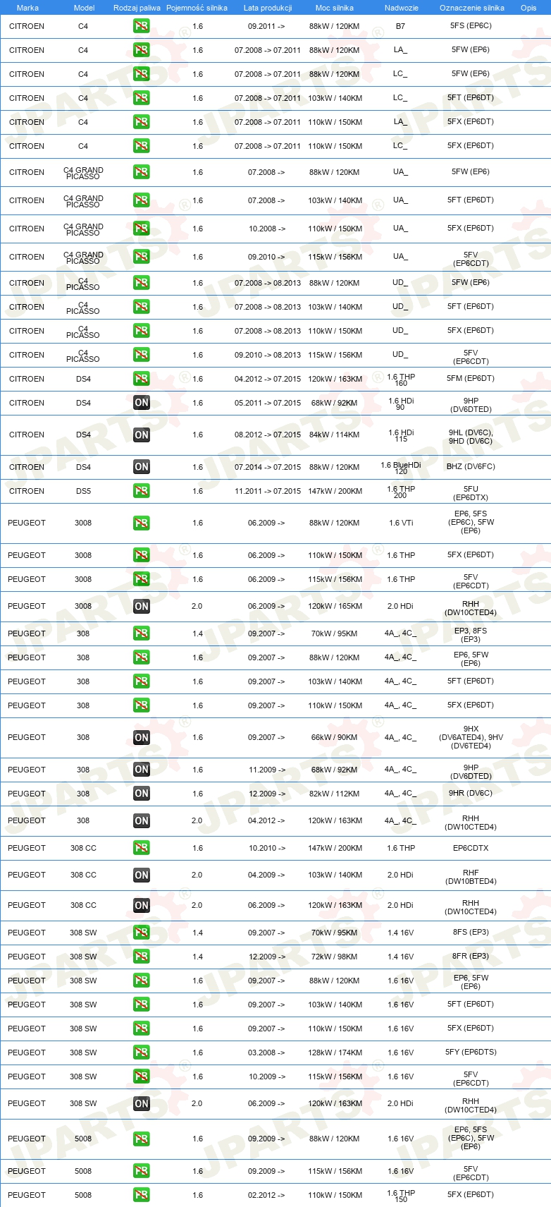 | Ograniczenia producenta: | CITROEN-PEUGEOT |