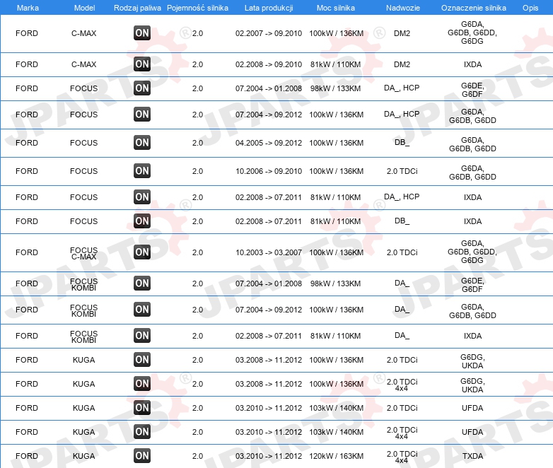 | Ograniczenia producenta: | SANDEN |