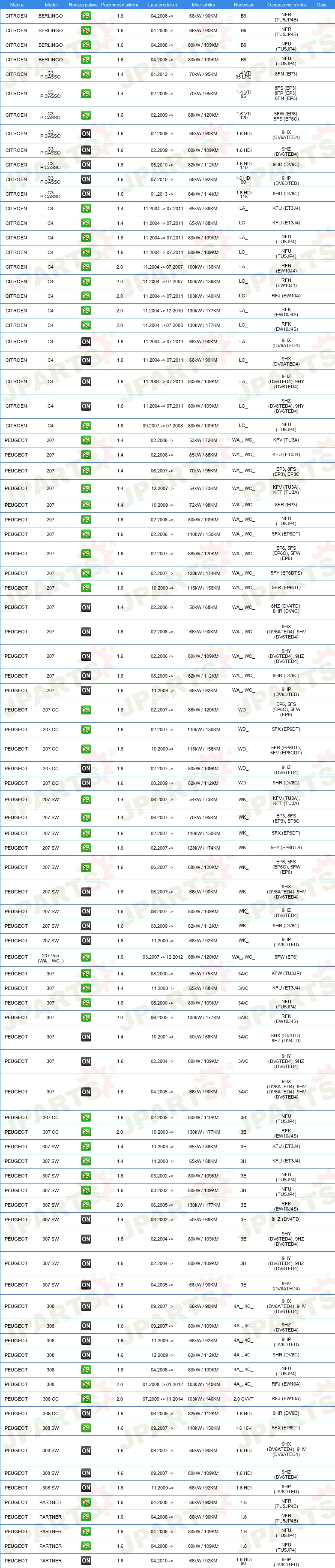 | Ograniczenia producenta: | SANDEN |