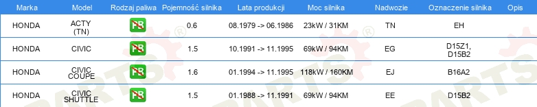 Informacje o części
