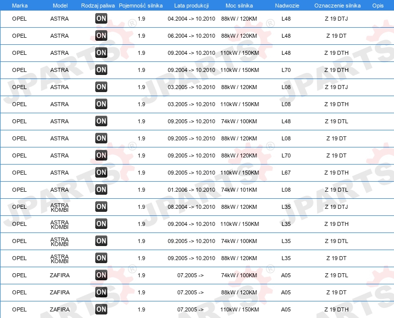 DLA NUMERU OE: