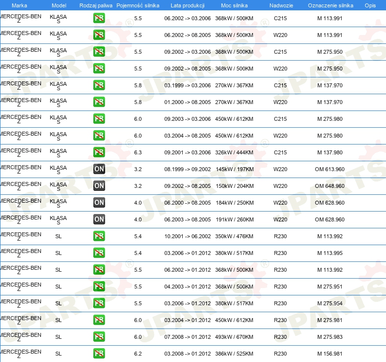| Wyposażenie pojazdu: | dla pojazdów z klimatyzacją |
