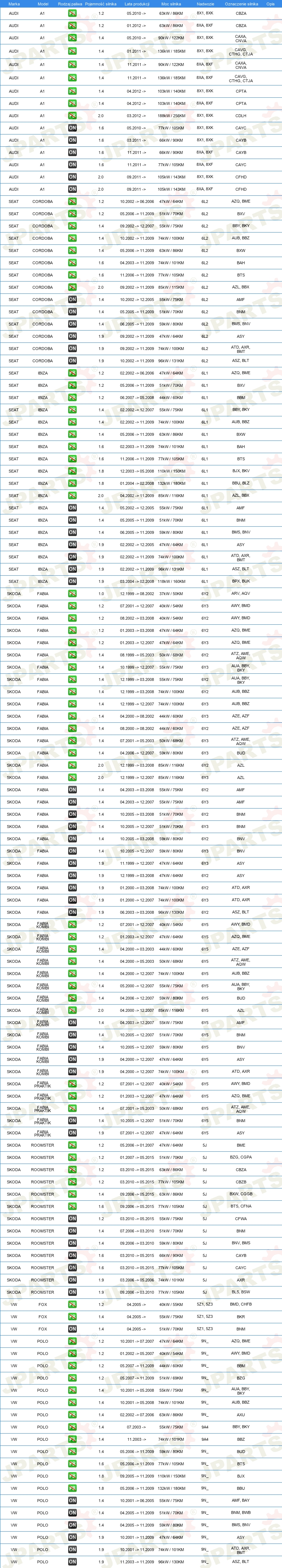 dla pojazdów z/bez klimatyzacji