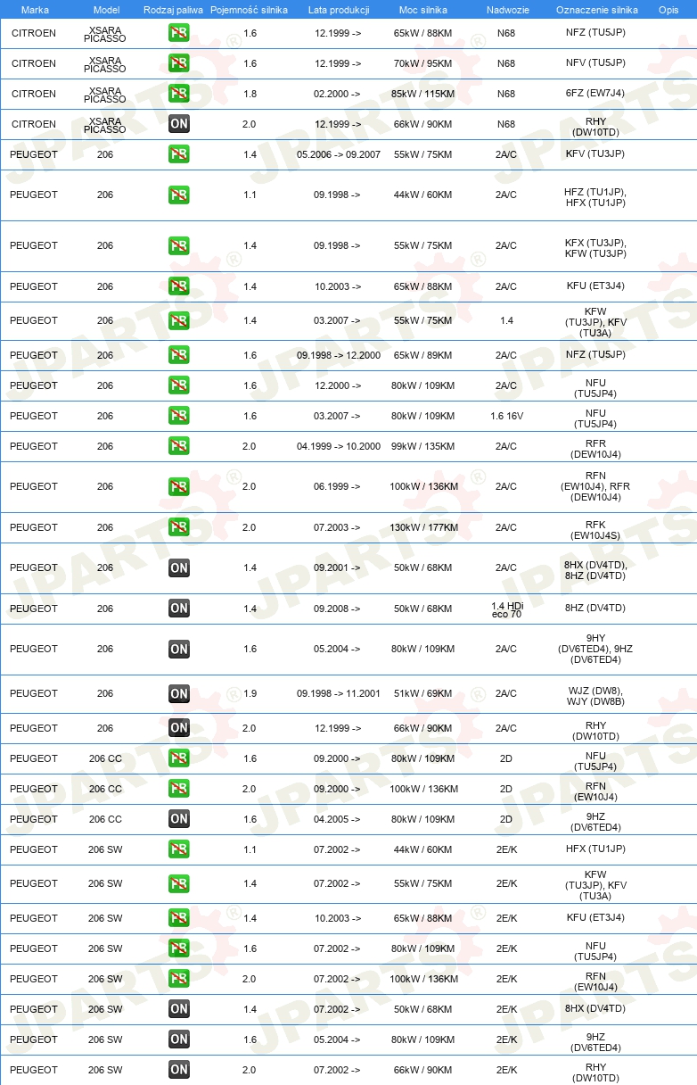 dla pojazdów z/bez klimatyzacji