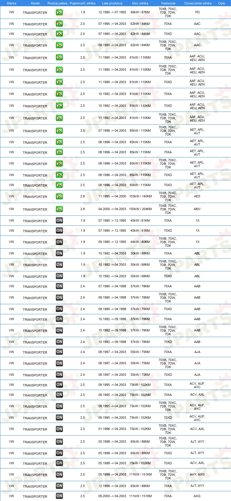 dla pojazdów z/bez klimatyzacji