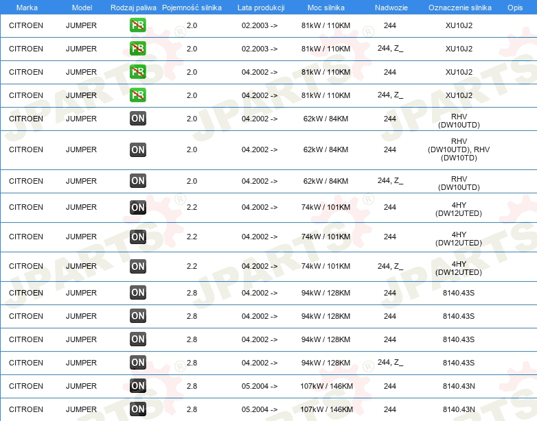 | Wyposażenie pojazdu: | dla pojazdów z/bez klimatyzacji |