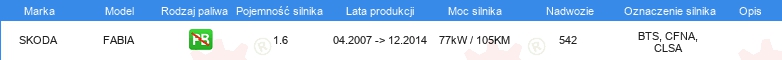 Dodatkowe informacje katalogowe