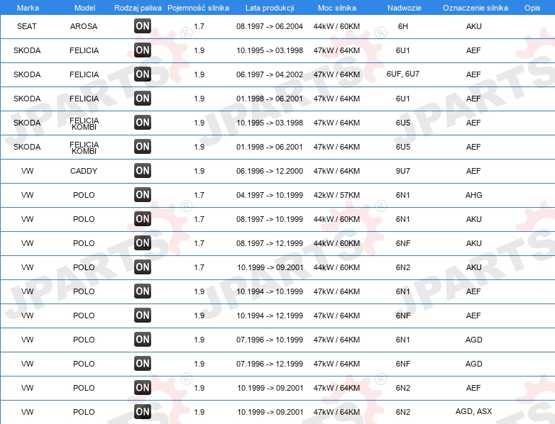 | dla numeru producenta: | F-226556.XX |