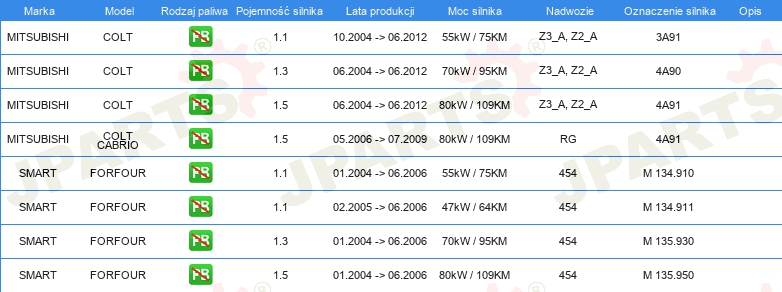 Informacje o części
