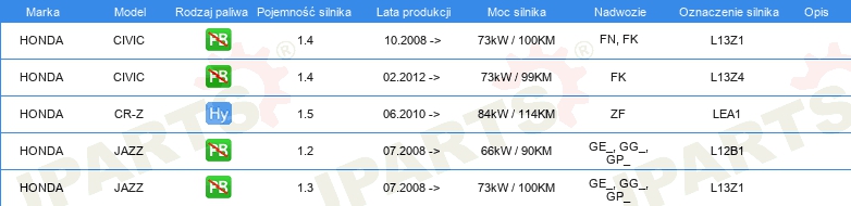 Informacje o części