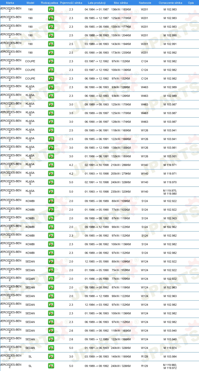 | Wyposażenie pojazdu: | dla pojazdów z rozdzielaczem zapłonu |