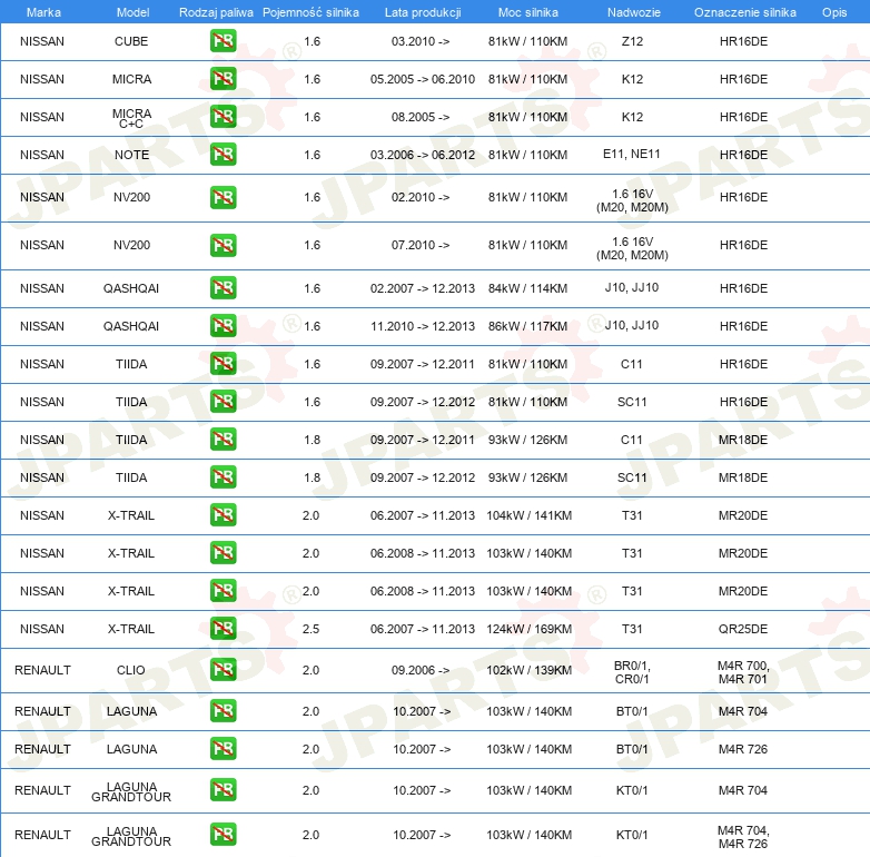 | Cewka zapłonowa: | łącznie ze złączem do świecy |