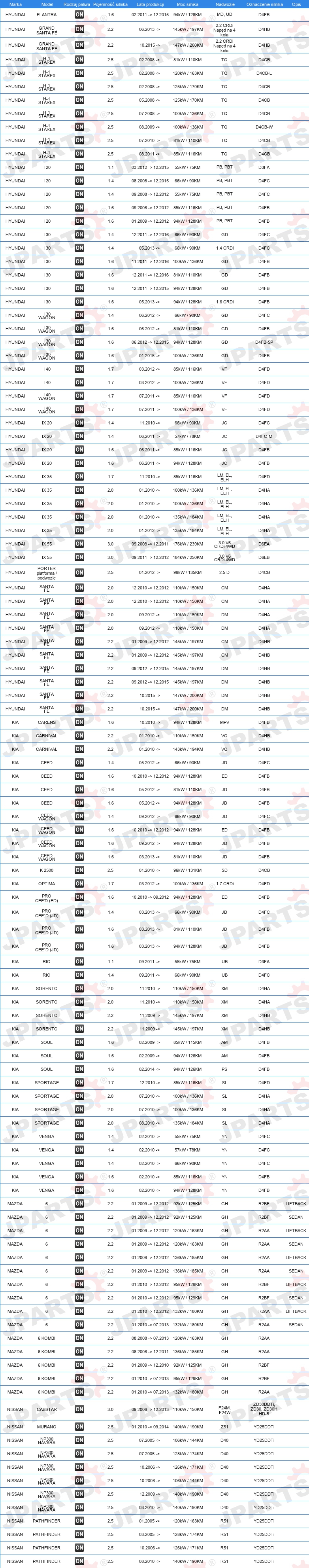 dla poj. z fabr. zamontowanym filtrem sadzy/cząstek stałych