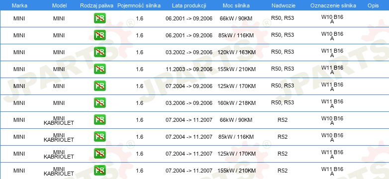 Informacje o części