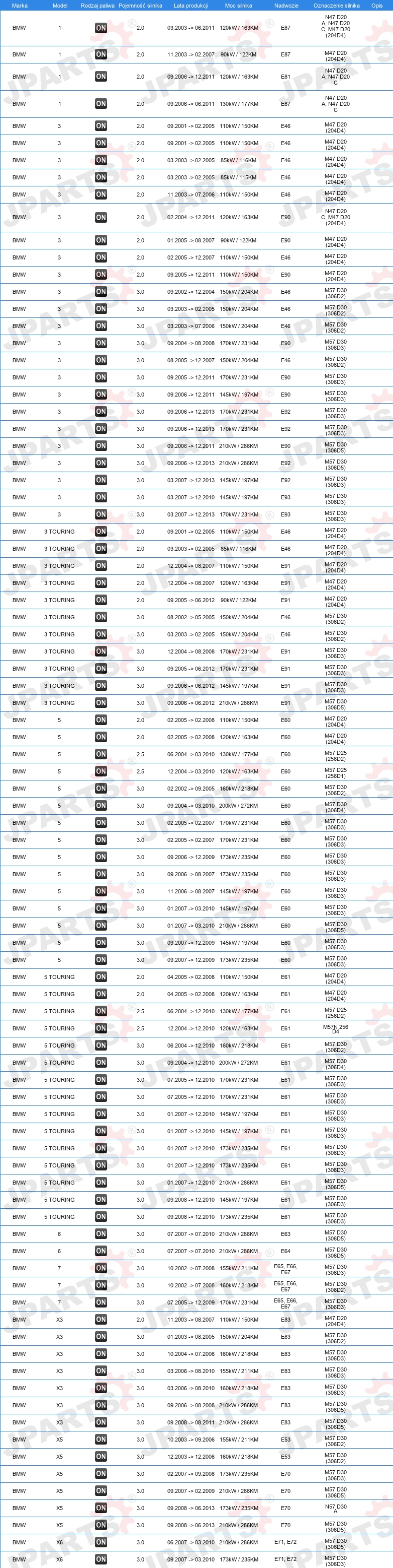 DLA NUMERU OE: