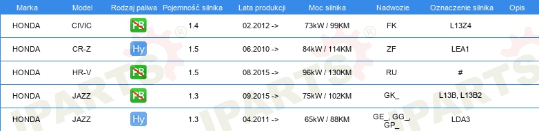 Informacje o części