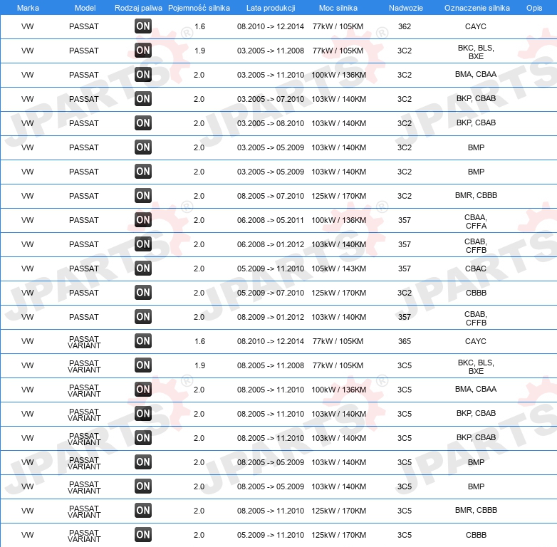 | Strona zabudowy: | za filtrem cząstek stałych |