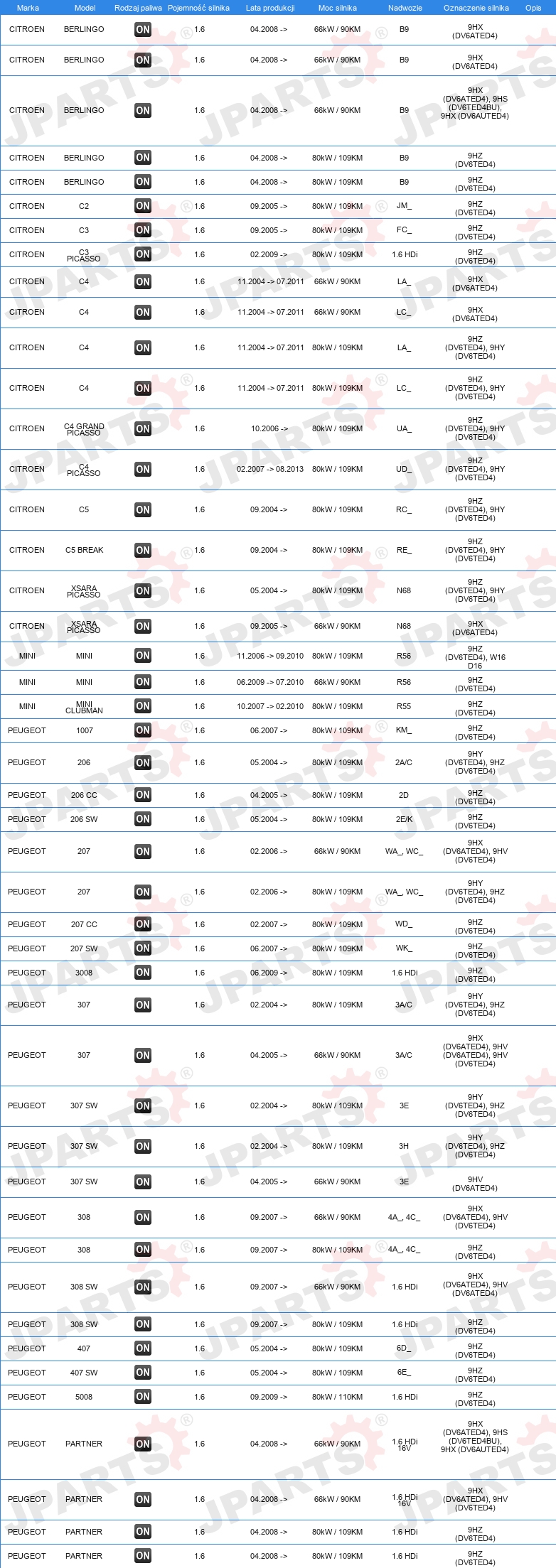 | DLA NUMERU OE: | 96 516181 80 |