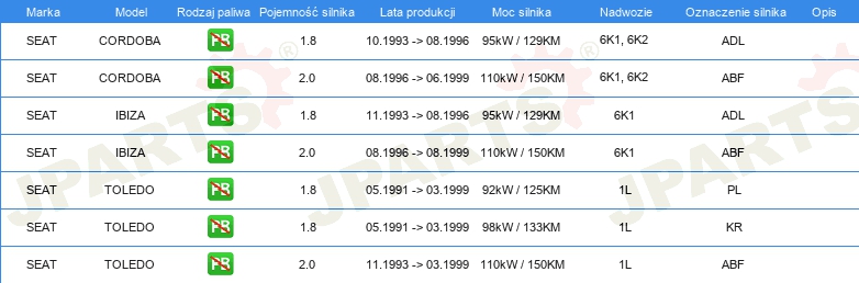 | Przewód zapłonowy: | Rodzaj połączenia SAE |