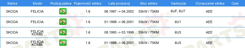 | Rozdzielacz zapłonu / Palec rozdzielacza: | Rodzaj połączenia M4 |