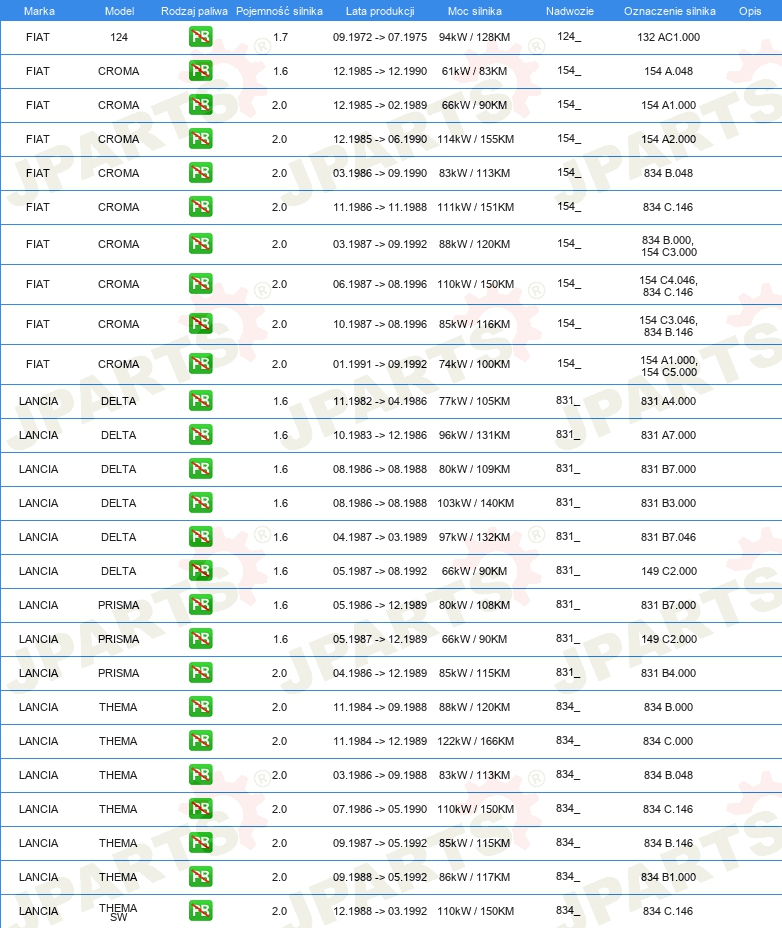 | Rozdzielacz zapłonu / Palec rozdzielacza: | Rodzaj połączenia DIN |