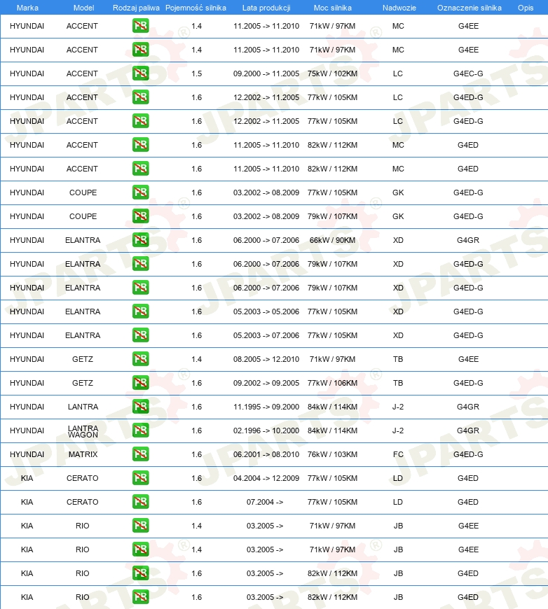 | Rozdzielacz zapłonu / Palec rozdzielacza: | Rodzaj połączenia DIN |