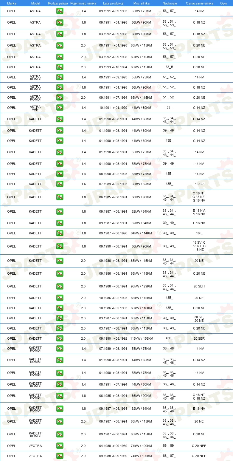 | Rozdzielacz zapłonu / Palec rozdzielacza: | Rodzaj połączenia M4 |
