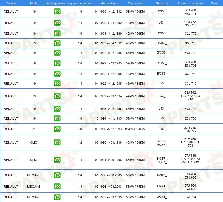 | Rozdzielacz zapłonu / Palec rozdzielacza: | Rodzaj połączenia SAE |
