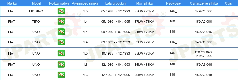 dla pojazdów z rozdzielaczem zapłonu