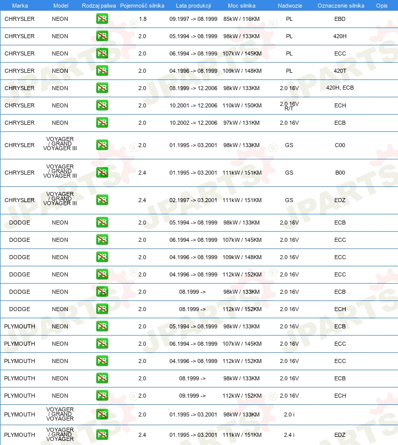 | Przewód zapłonowy: | Rodzaj połączenia SAE |