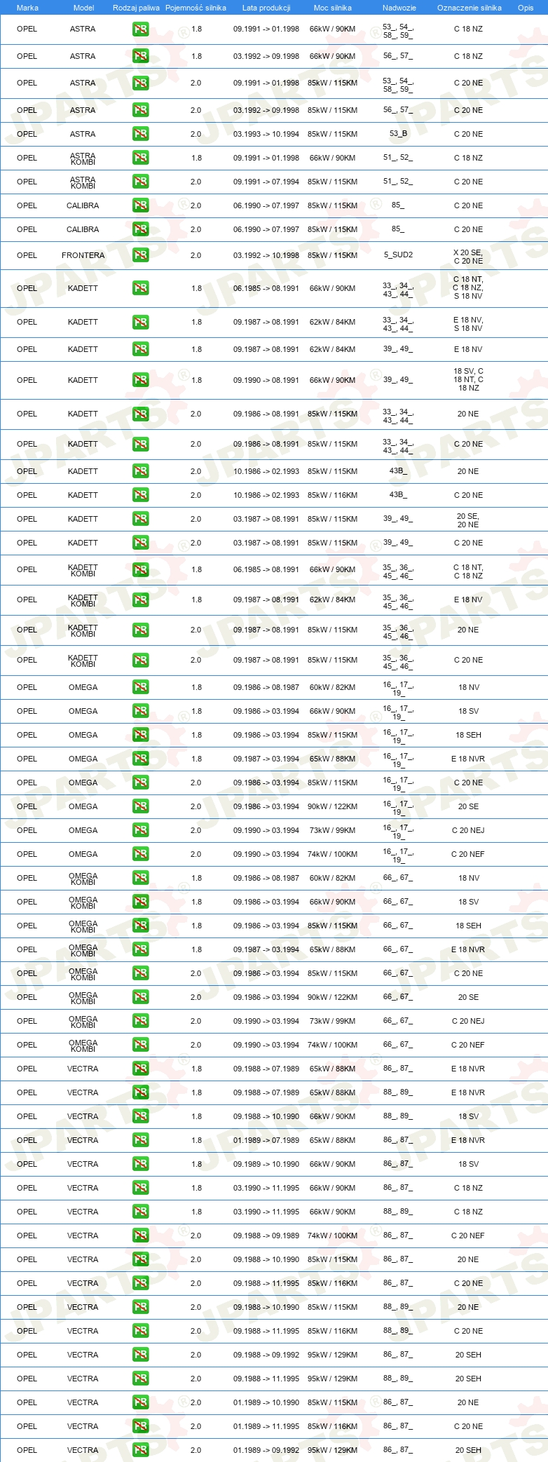 | Rozdzielacz zapłonu / Palec rozdzielacza: | Rodzaj połączenia M4 |
