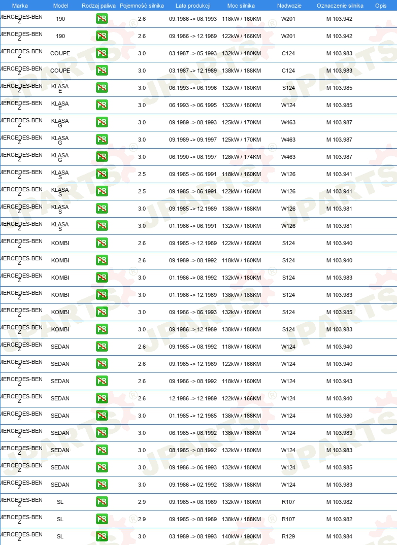 | Rozdzielacz zapłonu / Palec rozdzielacza: | Rodzaj połączenia SAE |