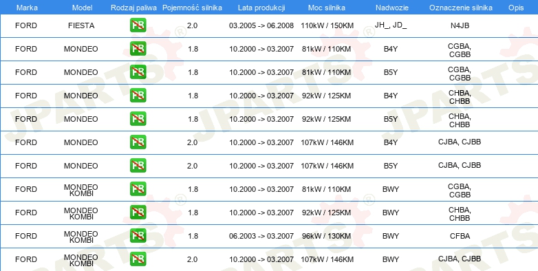 | Cewka zapłonowa: | Rodzaj połączenia złącze zębate |