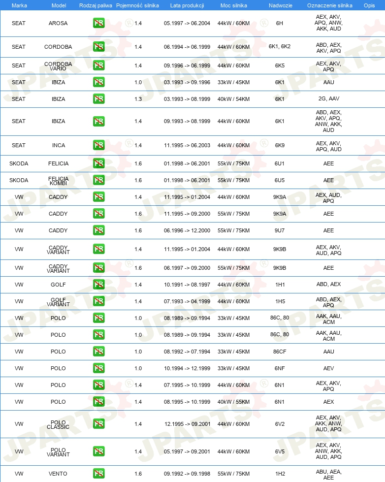 | Rozdzielacz zapłonu / Palec rozdzielacza: | Rodzaj połączenia złącze zębate |