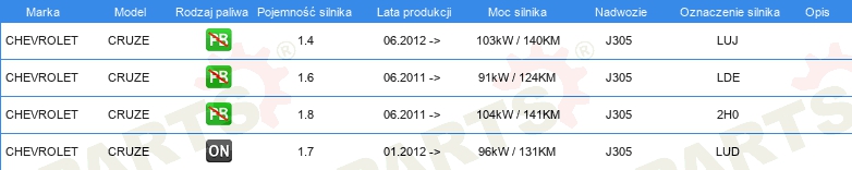 Informacje o części