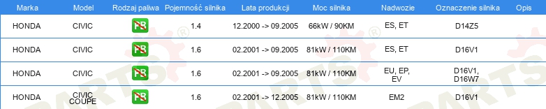 Informacje o części