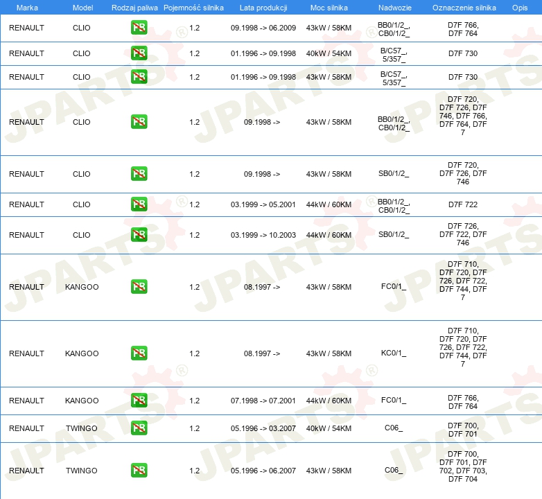 Informacje o części
