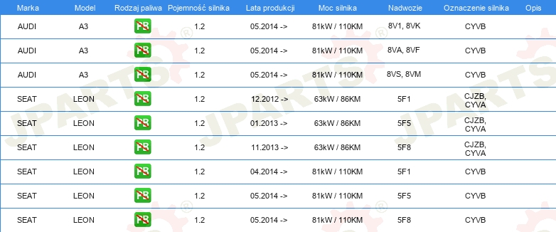 Informacje o części