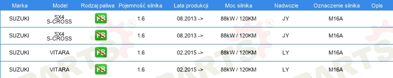 Informacje o części