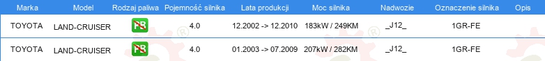 Dodatkowe informacje katalogowe