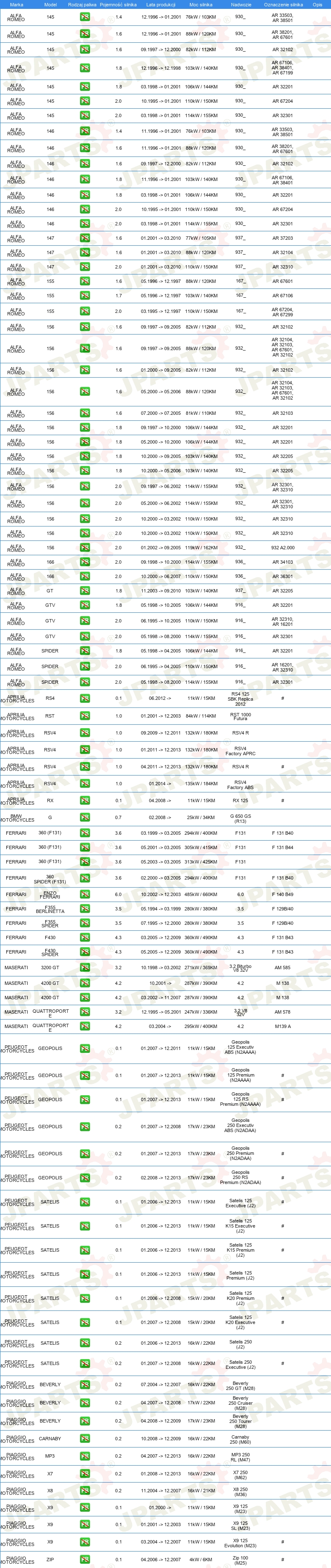 | świeca zapłonowa: | 1 elektroda masowa |